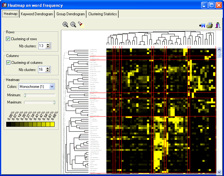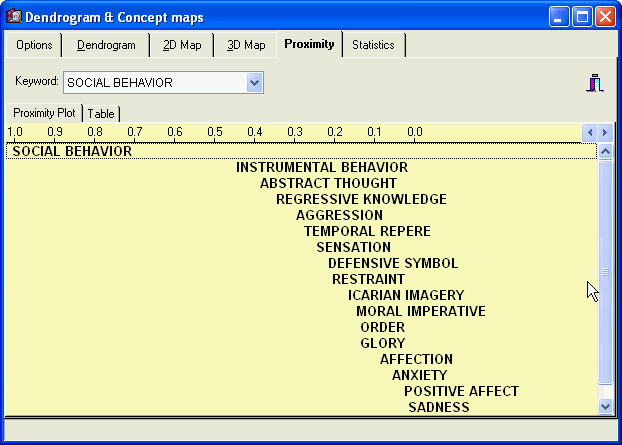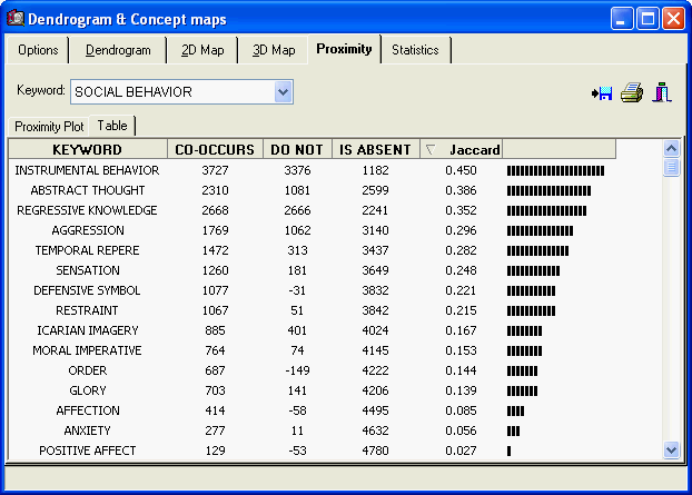 - Proximity plot to examine keywords co-occurrence or documents similarity in descending order of similarity.