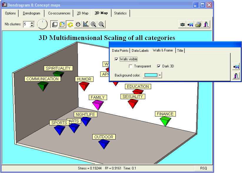 - Customization of 2D and 3D multidimensional scaling charts, correspondence plots and bar charts (title, color, data point, data labels, etc.)