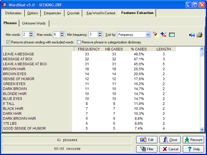 - Phrases finder to easily identify recurring phrases and idioms.