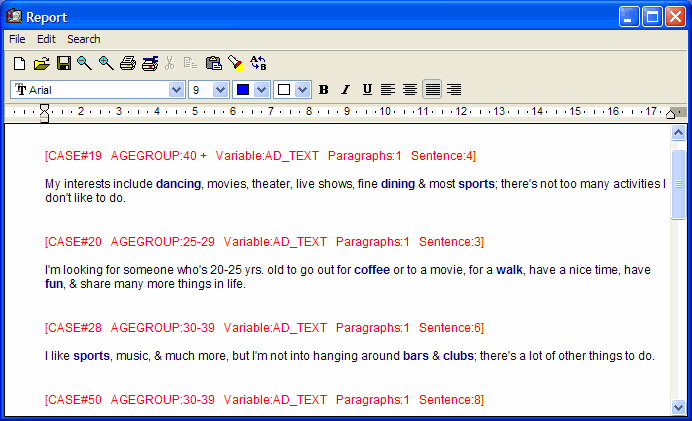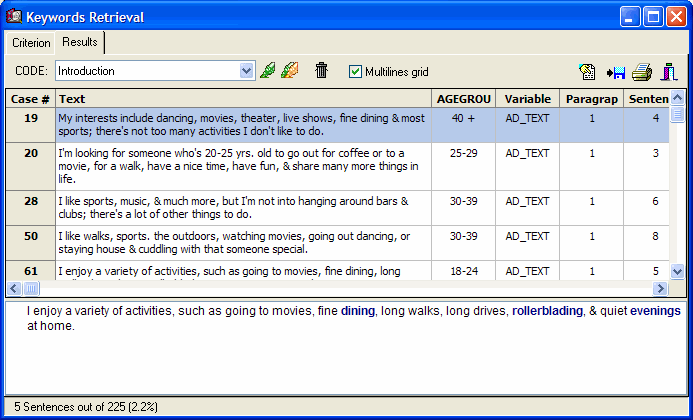 Retrieved text segments may optionally be tagged using QDA Miner