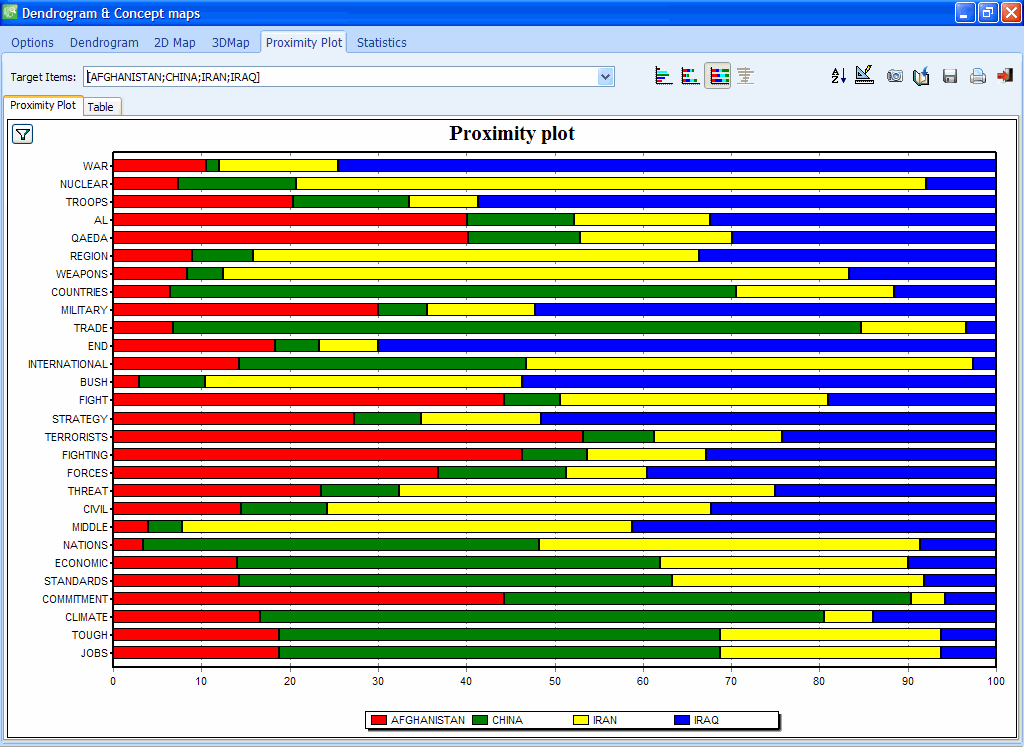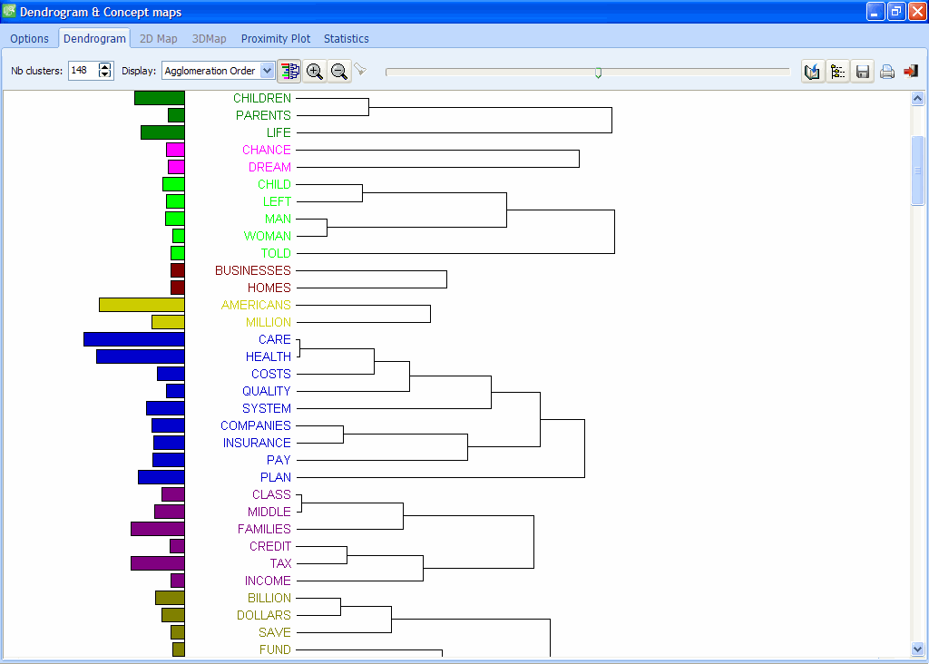 One can now display the frequency of terms in MDS 2D and 3D plots using bubble plots. Also a new constrained clustering algorithm now allows one to preserve the clustering structure in multidimensional scaling plots, making the interpretation of 2D and 3D MDS maps a lot easier and more consistent with the clustering solutions.